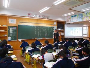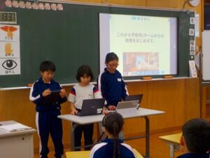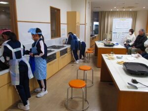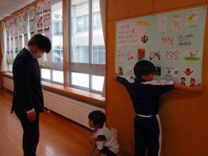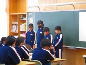 食に関する指導 2026年1月28日 未分類 現在、給食週間です。今日は。栄養教諭の藤原先生に来ていただき、給食ができるまでということで、給食センターで約3000人分の給食を作っている様子を教えてもらいました。いろいろな仕事があることを知ることができました。