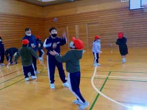 1、5年生 昔の遊び 2022年1月17日 1年, 5年 1年生と5年生が、めんこやこま、お手玉等、昔の遊びをしました。1年生は、5年生から遊び方を教わりながら楽しみました。感想タイムに、1年生は「5年生から教えてもらってできるようになった」「楽しかった」、5年生は「1年生との交流はなかなかない機会だったのでうれしかった」等と話していました。その後の大休憩にも、1年オープンスペースで5年生と1年生が仲良く遊ぶ姿が見られました。