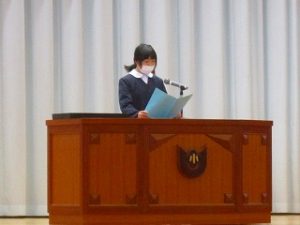 第3学期始業式 2022年1月11日 学校行事 3学期の始業式を行いました。校長先生が、「苦手なこと、初めてのことに対しても前向きな気持ちでトライすることで自分の世界や可能性を広げることができるので、小さなチャレンジを積み重ねる年にしてほしい。自分のため、みんなのために今日一日を大切に過ごしましょう」と話しました。 6年生代表による3学期に頑張りたいことの発表と黒部市防火ポスター展の授賞もありました。