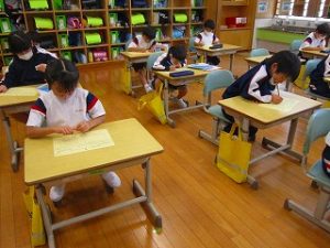 校内書初め大会 2022年1月11日 学校日記 1、2年生はそれぞれの教室で、3~6年生は体育館で書初め大会を行いました。静粛な雰囲気の中、どの子も集中して書いていました。冬休み中に練習したことが伝わる力強い作品がたくさんありました。