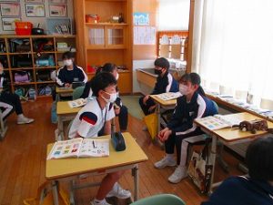 4年生 総合 2022年2月22日 4年 6年生を送る会の招待状を6年生に渡しました。招待状には、運動会でみんなをまとめていたこと、地区児童会や集団下校でお世話になったこと、習い事でいろいろと教えてもらったこと等、お世話になったことを思い浮かべながらメッセージを書き、渡す相手が好きなものを想像して絵を描きました。6年生の嬉しそうな姿に、4年生の子供たちも笑顔になりました。