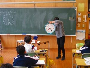 1年1組 算数 2022年2月16日 未分類 何時何分の時刻の読み方を学習しました。時計の長針が表す「何分」は、細かい目盛りで読むことを確認し、模型の時計を使って表された時刻を読んだり、指示された時刻を自分の時計で表したりしました。