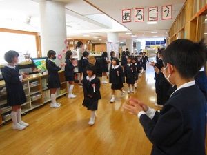 令和4年度入学式 2022年4月8日 学校行事 令和4年度入学式を行いました。新入生22人は緊張の面持ちで、6年生に手を引かれ体育館に入場しました。 担任の氏名点呼では、どの子も元気いっぱいの大きな声で返事をしていました。6年生の代表児童が歓迎の言葉を言いました。 新入生は、正しい姿勢で式に参加し、話もしっかりと聞いていました。 2~5年生は各教室でリモートで式に参加しました。 式の後は、登校の付き添い児童との対面式を行いました。