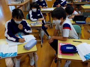 4年生 理科 2022年10月17日 4年 「すずしくなると」の学習で、学校のまわりの植物や生き物の観察をしました。植物では、葉っぱが枯れていることや実がなっていること、生き物では、つばめがいなくなっていること、昆虫の数が少なく、動きが鈍くなっていること等に気が付いていました。