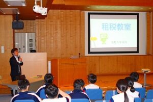 6年 租税教室 2023年4月27日 6年 本日、税理士の方を講師に招いて租税教室を行いました。まず、税金の種類や集め方についてクイズを交えながら基本的な知識を学びました。その後、もし税金がない社会になったらどのような問題が起こるかについて話を聞き、大変なことになるということに驚きながら6年生は話を聞いていました。また、税金の集め方について実際に考える活動を通して、税金の大切さを学ぶことができました。