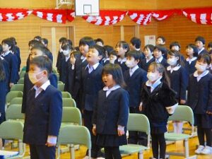 その後、校長先生からお話がありました。「皆さんは、この1年間ものすごく成長しました。」と褒めてくださり、各学年の良いところを伝えてくださりました。また、トーマス・エジソンの経験を話題にして、「学校は間違って失敗するところで、その経験が学びにつながると」励ましてくださいました。