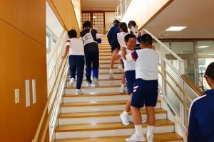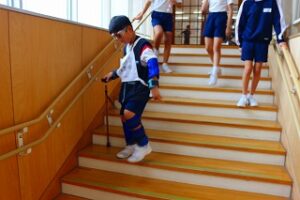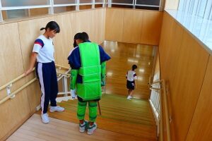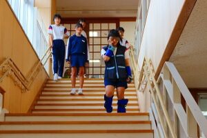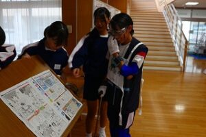 6年生は、総合的な学習の時間に「福祉」について学習しています。いろいろな年代の方が共に生きるための課題や方法を考えています。今日は、高齢者疑似体験をして、共に生活するためには、どのようなことに気を付けなければいけないか考えました。
