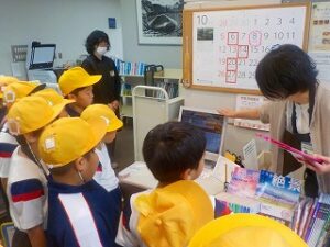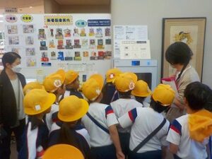町たんけん(うなづ友学館見学) 2025年10月31日 未分類 2・3時間目に町たんけんで、うなづき友学館に見学に行きました。一人一人、本の貸出カードを作り、本を1冊借りました。また、あじろ編み体験もすることができました。