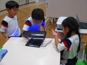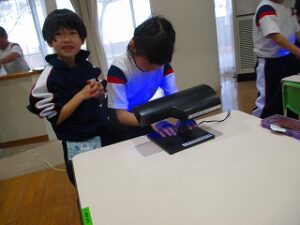 自分に合った手洗いを見つけよう(1年生) 2025年11月27日 未分類 今日の5時間目に手洗い指導をしました、ハンドソープを付けて手洗いをしたのに、汚れが残っているのを確認しました。どのような手洗いをすればよいか、自分なりに考えました。