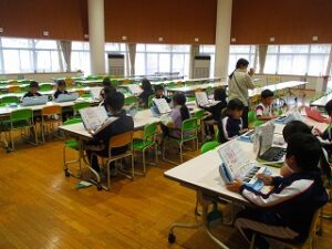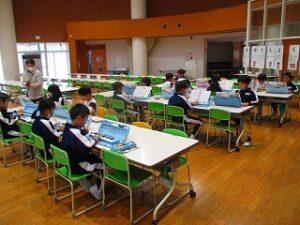 音楽の時間に、「小ぎつね」「山のポルカ」「ミッキー」の3曲を鍵盤ハーモニカで弾きました。3曲とも、とても上手でした。「トルコ行進曲」に合わせて、行進をしました。とても楽しく行進できました。
