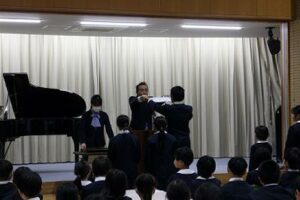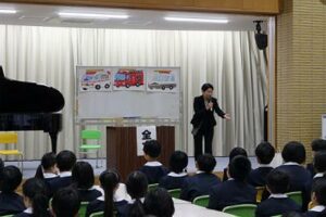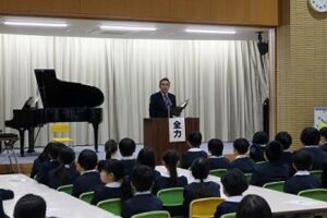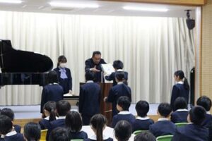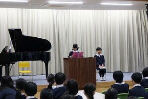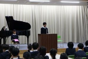 終業式の前に、こつこつノート3冊達成者と6冊達成者の表彰、ポスター等の作品応募の授賞を行いました。次に、2学期の終業式を行いました。1年生と3年生の代表児童が2学期を振り返ってがんばったことを発表し、校長先生からは「全力」についての話がありました。終業式後には、生徒指導主事から冬休みの過ごし方についての注意喚起がありました。