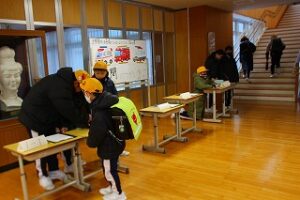 6年生は、「福祉」をテーマとした総合的な学習の時間に募金について調べ、その大切さを知りました。集まった募金は、「赤い羽根共同募金」と「ユニセフ募金」に寄付します。今週毎朝、6年生が玄関で集めています。