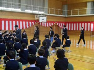 新しい10人の先生を迎え、着任式を行いました。児童は、新しい先生の話をよく聞き、拍手で歓迎していました。